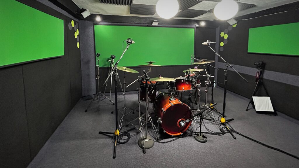 Sesiones en sala acústicamente tratada con micrófonos y equipo de alta gama.